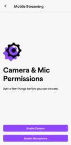After all this, you will see a pop-up of screen with a cute creature(as shown below). Furthermore he will ask you to Enable the Microphone and camera. This is because Twitch is asking to allow them to access your microphone and camera in order for you to be seen and heard on your live stream.