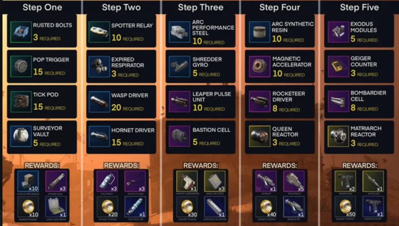 The Trophy Display project is this patch’s long-term goal—a multi-step hunt where you track down powerful ARC groups and turn in their parts to build a display. It’s set up like the old Flickering Flames event, but with five stages that reward you with blueprints, tokens, a Jupiter weapon, a guitar emote, and a hefty 300,000 coins.