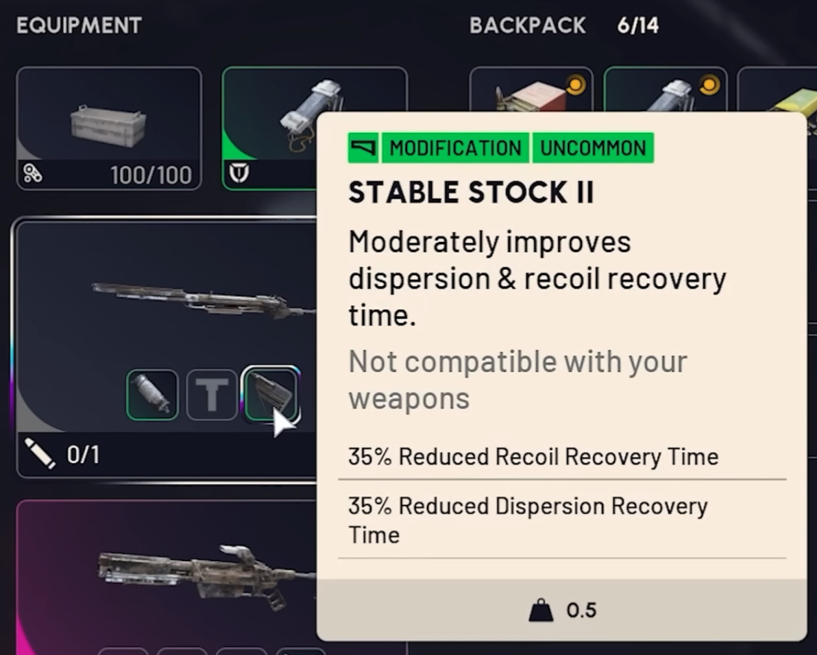 You start with simple gear, but you can find or make better versions. These are color-coded from white (common) all the way up to yellow (legendary). This applies to gun parts, special gear like the grappling hook, and healing items, giving you plenty to hunt for.