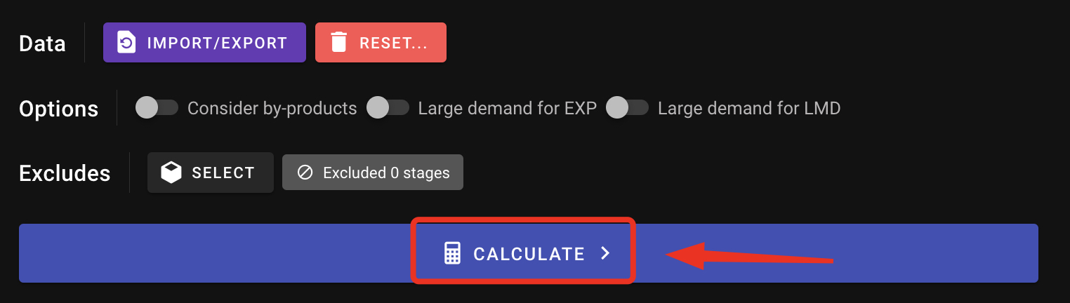 After you set everything up, click “Calculate.” The planner will look at the data and tell you the best stages to farm for the items you need.