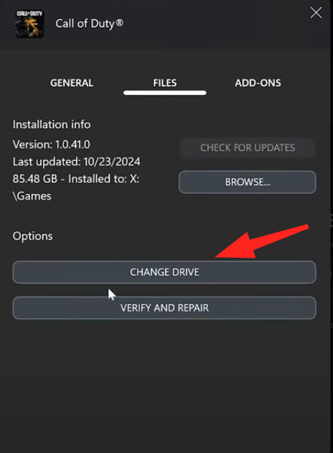 - Go to the Files section and click on Change Drive.