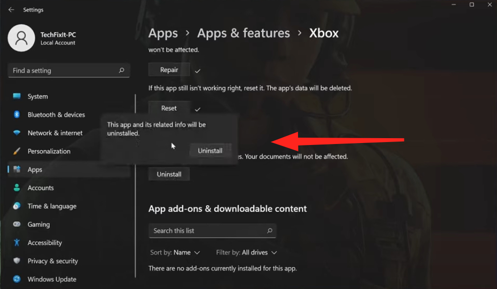 - If repairing the app doesn’t work, click on Reset and confirm. If resetting doesn’t work, choose Uninstall.