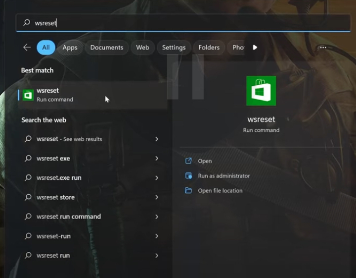 - Open the Start menu and type WS Reset.