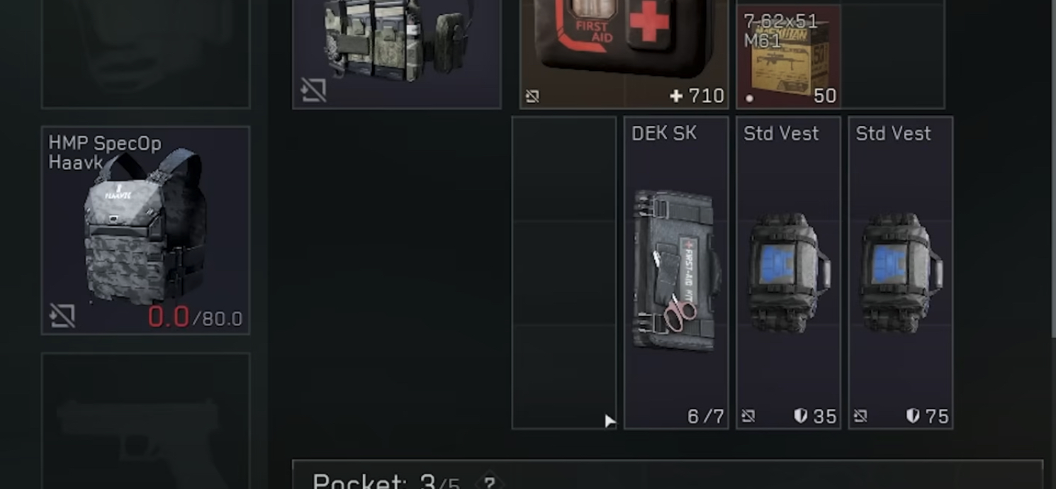 Medium-rated items like the FS Composite vest or Gold Heavy Assault vest use more than 75% and sometimes almost the whole kit.