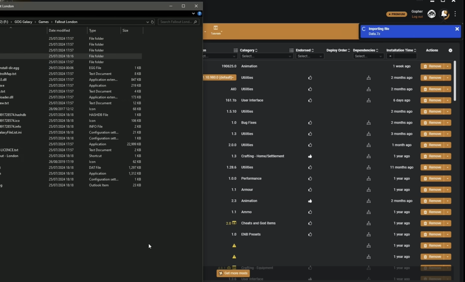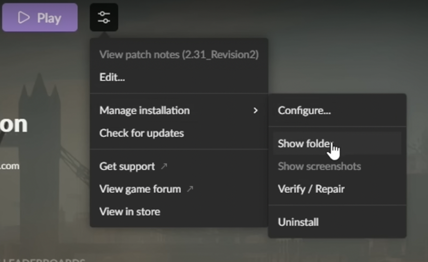 - Go to manage installation -> show folder in GOG for Fallout: London files.