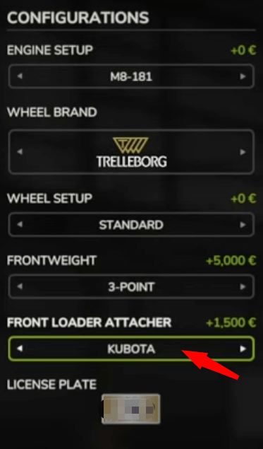 - Press R to see repair and change options. Pick your tractor and add the front loader attacher.