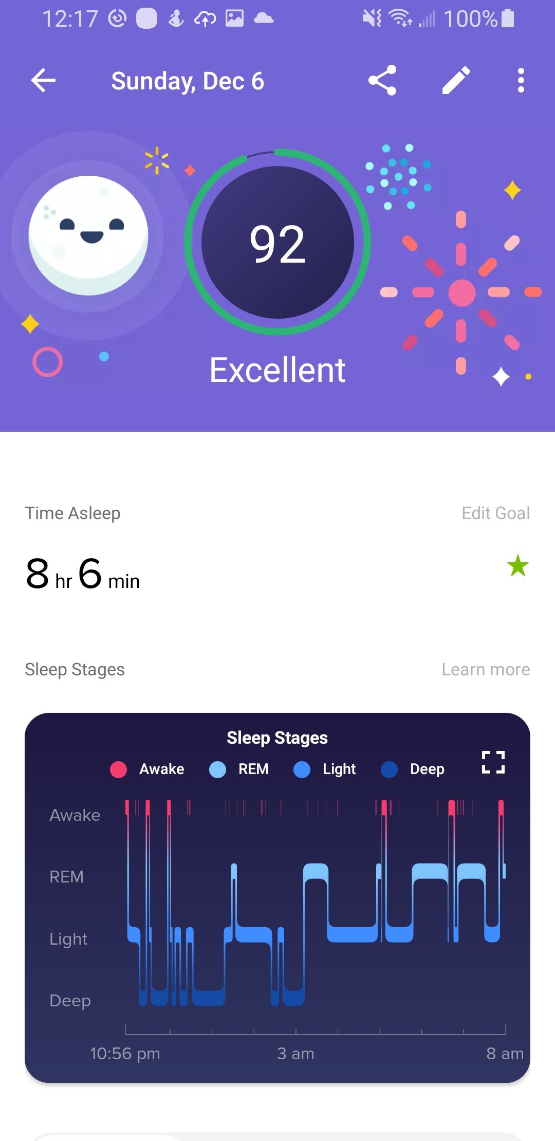 - Awake Time: Fitbit devices also track the time you’re awake at night. These brief awakenings can be normal and are often not remembered in the morning. However, excessive awake time can disrupt sleep quality and lead to feelings of restlessness or fatigue.