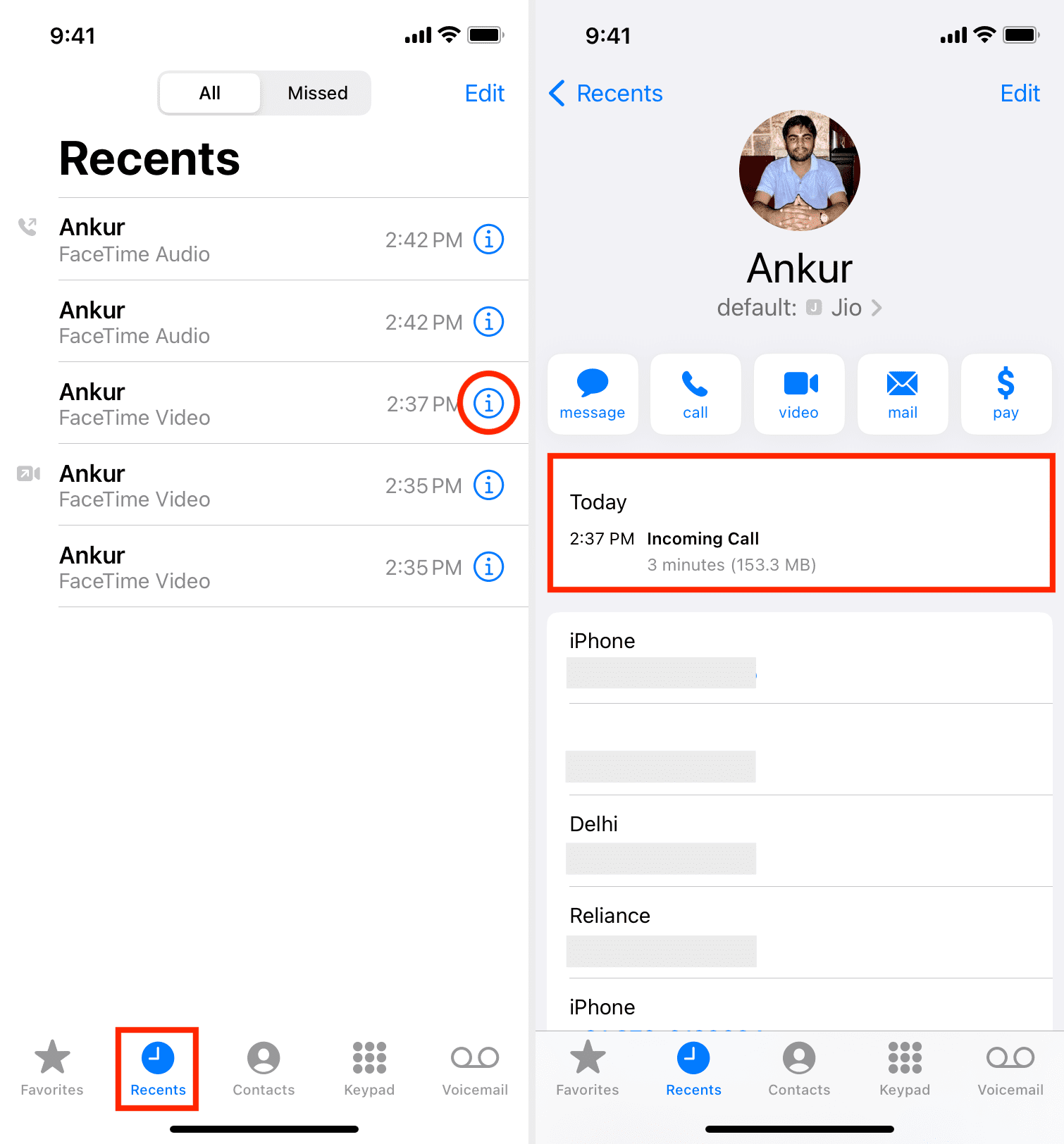 Issue 2: FaceTime Call History Not Showing Up on Recent Calls