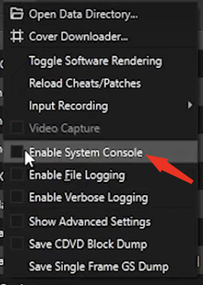 - Select the option to Enable System Console. This is crucial for generating the .pnach file necessary for enabling cheats.