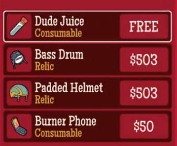 Between fights, you can spend cash or items to revive knocked-out teammates with something called “Dude Juice.” It’s a soft resurrection system—you can use it mid-fight in a pinch, or more effectively between rounds to bring back multiple dudes.
