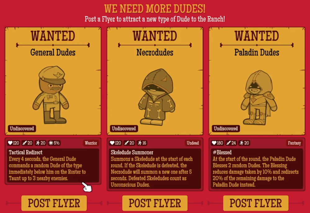 General Dude – Commands others to taunt enemies, working like a tank.