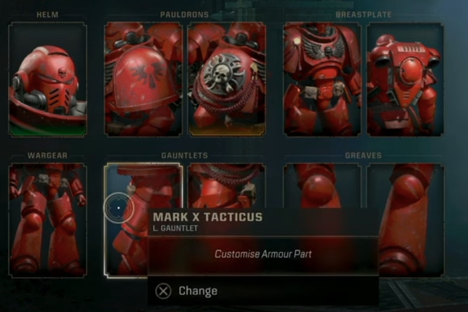 - Chapters- Changing Chapters: You can change the main colors of your Marines by selecting different chapters such as Ultramarines, Blood Angels, Dark Angels, Iron Hands, Raven Guard, Salamanders, and Space Wolves.