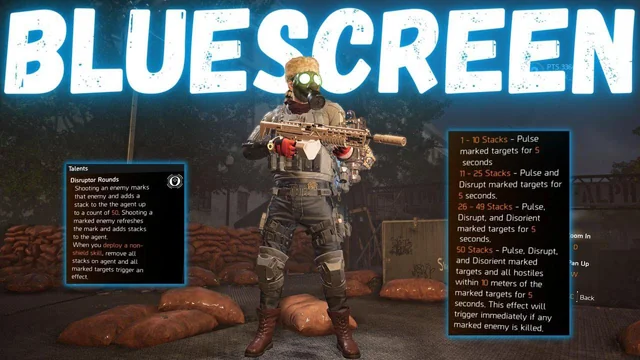 - Disorient and crowd control: As a unique feature, the Blue Screen tags enemies, causing status effects like stagger and disorientation when fully marked.