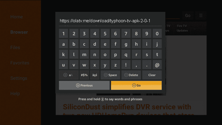 - Enter exact URL to download (https://cyberflix.info/typhoontvapk)