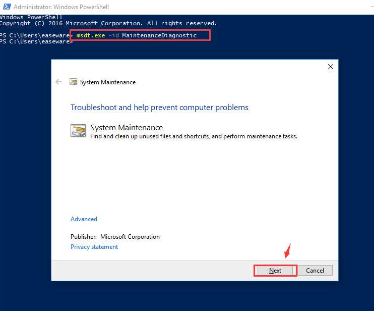You will see a troubleshooting window popping up like this 👇🏻. Click Next to let the troubleshooting run.