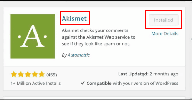 Akismet Anti-Spam plugin is used to block spammy comments coming to your website.